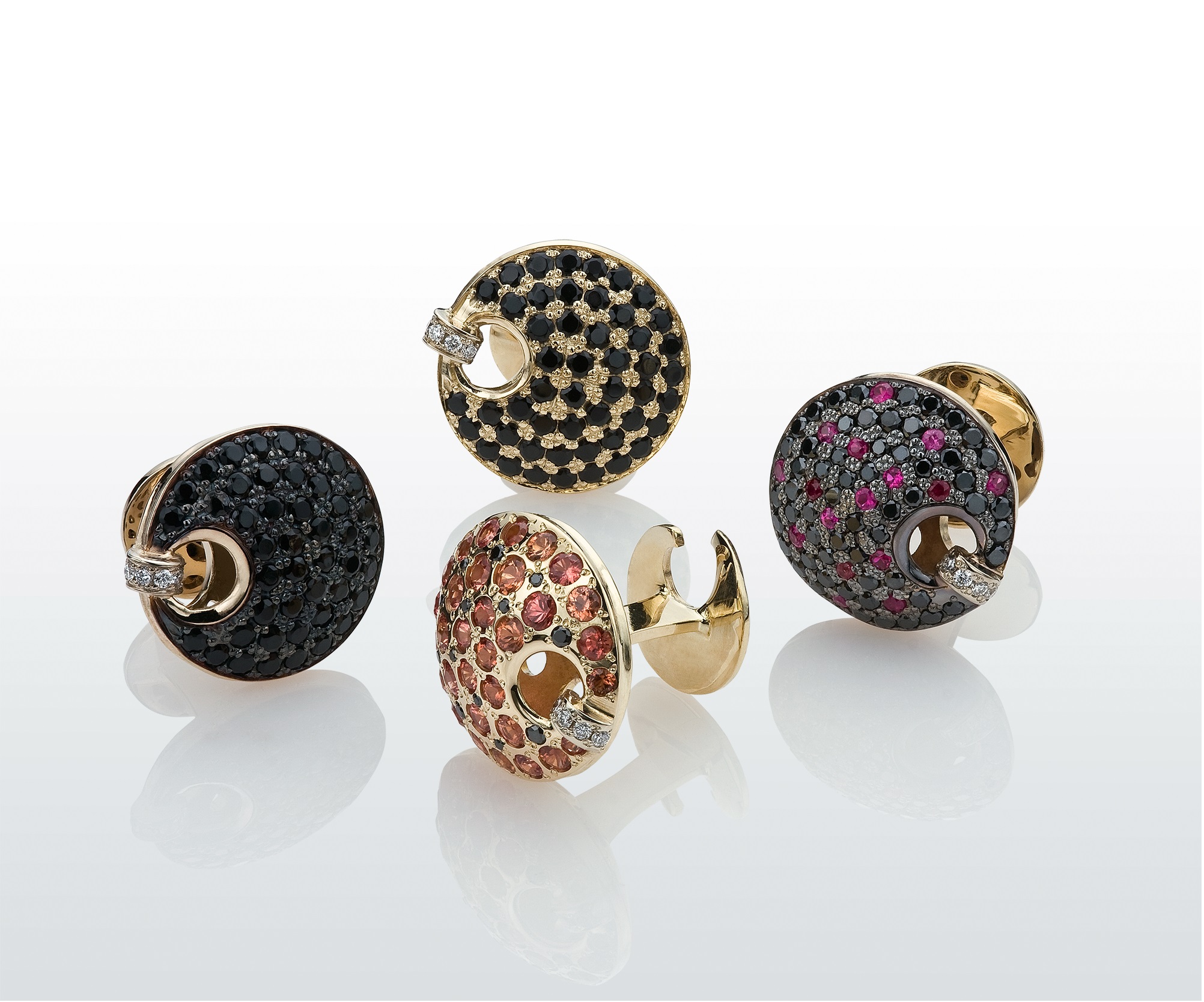 Желтое и белое золотоЧерные и белые бриллиантыРубины. Спессартины